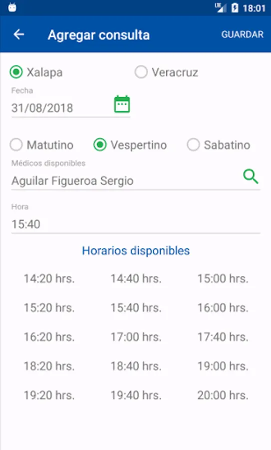 Application for the beneficiaries of the Integral Health Care System of the Universidad Veracruzana (SAISUV), in which they can reserve, visualize and cancel consultations with the doctors of the Xalapa and Veracruz Regions Modules.