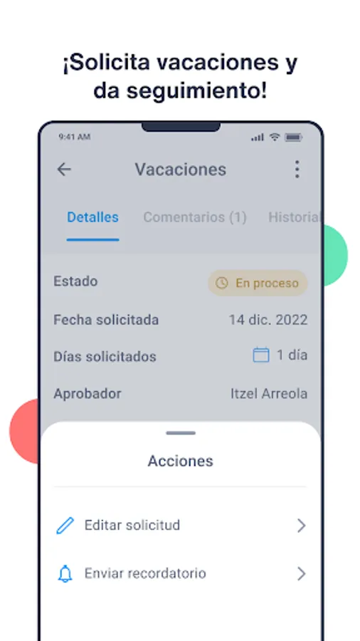 Request vacations, personal days and other incidents. Find out who is on vacation, working remotely, the weekly events and announcements from your company.