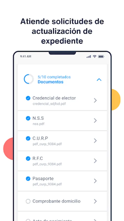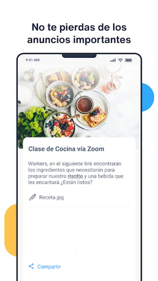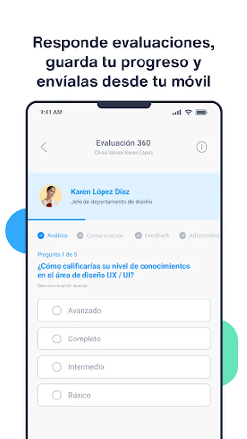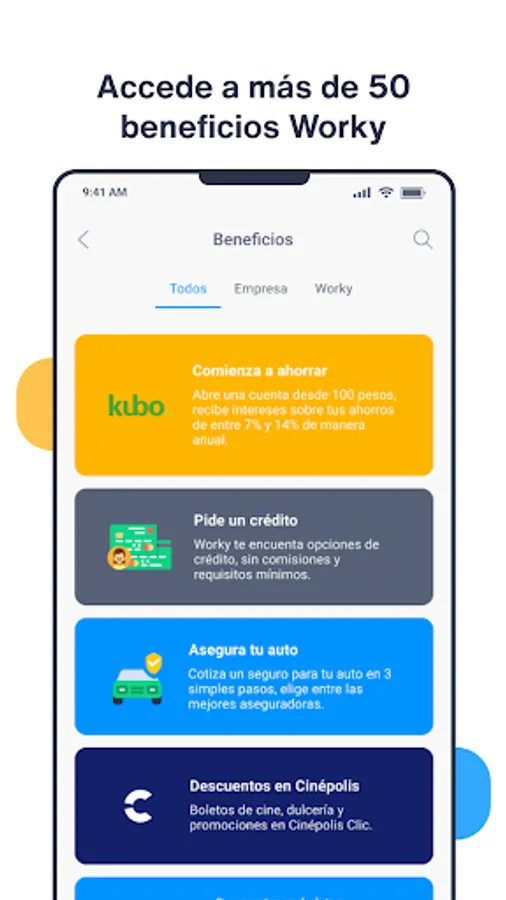 Through the app you will be able to fill out pending evaluations and the information from your file that they request, in addition to knowing the benefits that being a Worky user gives you, and the specific benefits of your company.