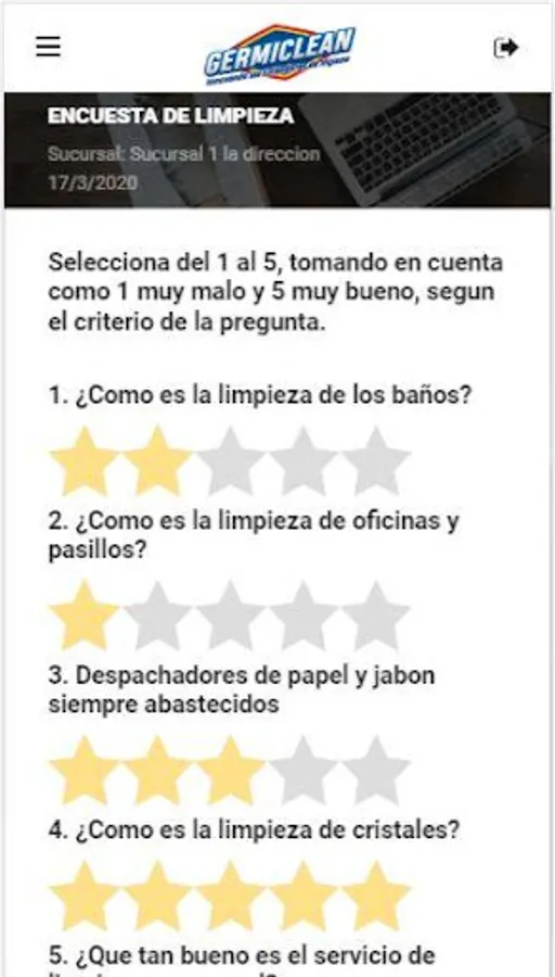 Application to create and answer surveys about the cleaning service
