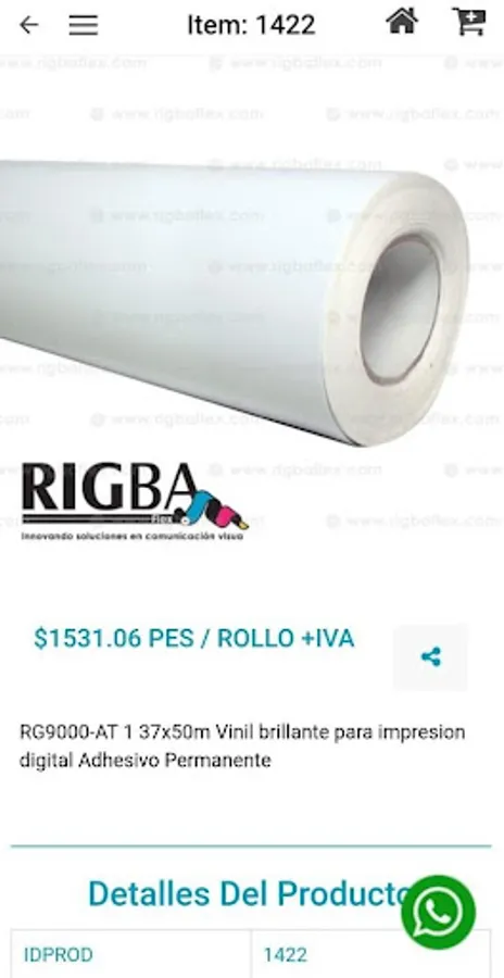 Application for detailed consultation of rigba flex products as well as requests for quotations and placement of orders