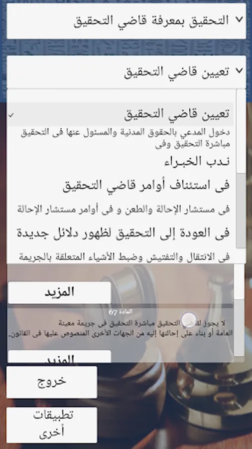 The application of the law of the Egyptian Criminal Procedure is the first application of its kind that contains all the Egyptian Criminal Procedure Egyptian materials according to the latest amendments. Law 95 of 2003