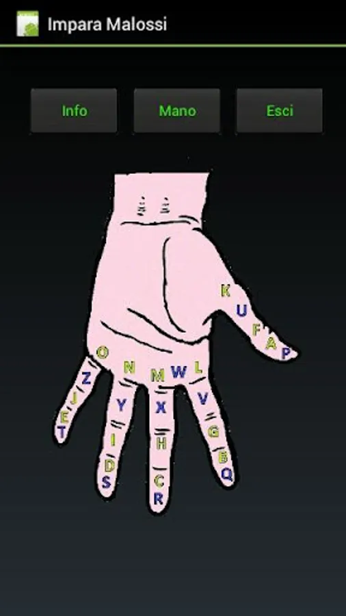 This application was developed in order to facilitate the learning of the Malossi method through the exercise of memorization of the letters drawn on a hand.