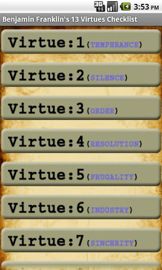 This app brings you the knowledge of a very great man "Benjamin Franklin". Benjamin Franklin lived by a checklist he made that he applied to his every day life that contained 13 Virtues.People who have followed theses 13 Virtues have changed there lives made them happier, wiser and richer in way only some can dream of and also shown them the true meaning of life.I hope you enjoyed this app as much as I have making it.