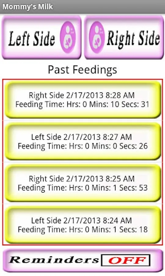 With this app "Mommy's Milk" you will be able to keep track of which side and time you breast fed from. Plus it have built in customizable notification reminders that you can set the intervals ,to remind you not to miss feeding times.