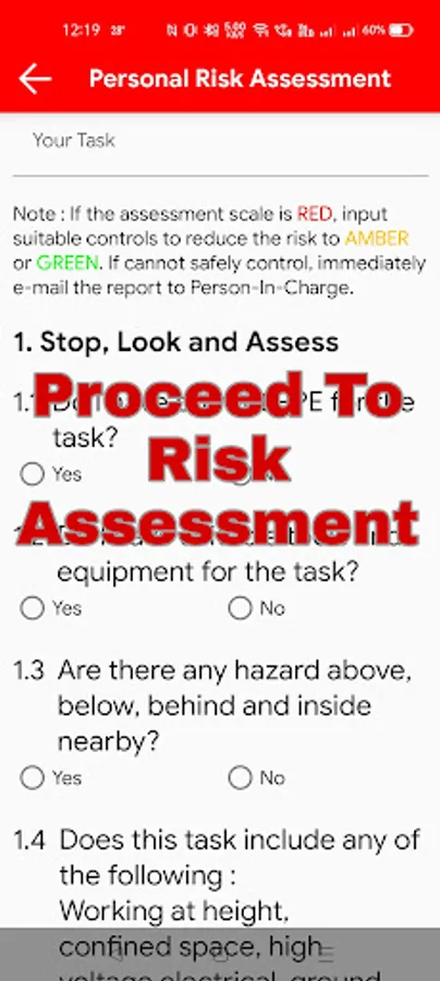 Assess, and report information about risk and hazard before any task taken.
