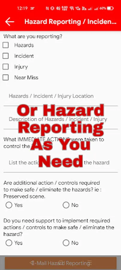 This app is designed to reduce barriers for reporting, users engagement and increase robustness of the notification and reporting via email, includes image and other info. The report will be redirect to e-mail format for submission which allows actions to be taken based on the formal report.