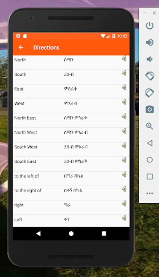 Android mobile App which provides the Amharic equivalents of English words that are used for basic communication. The app also supports audio pronunciation of the Amharic words.Quizzes fro categories is also provided.