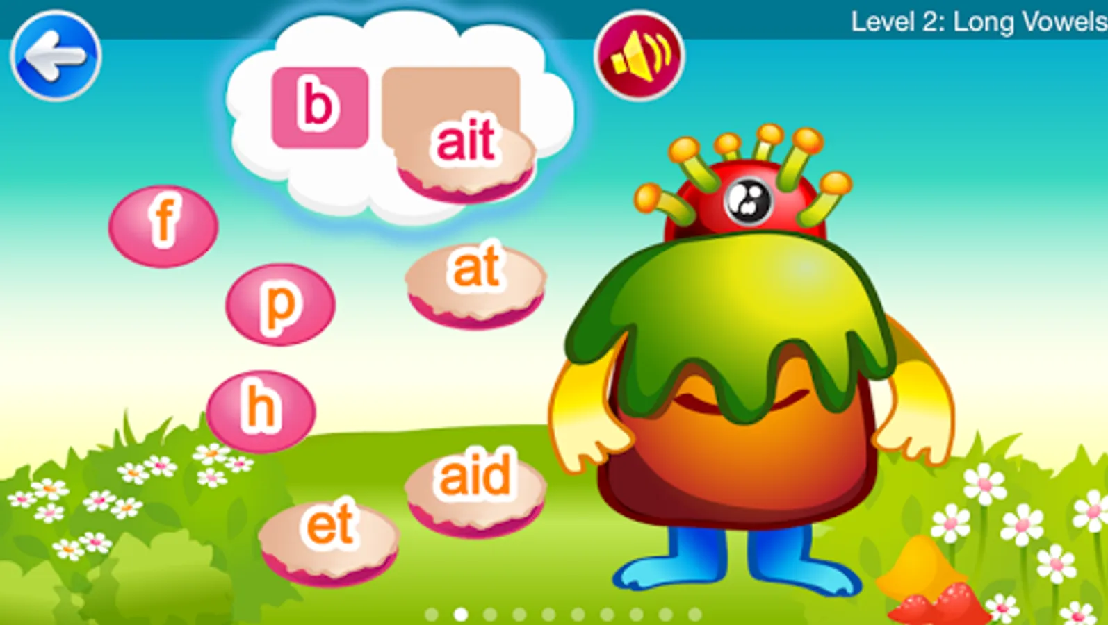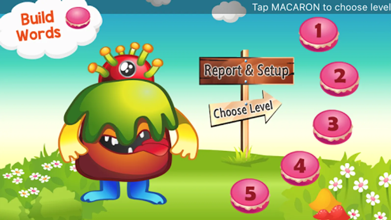 Howie Build Words is a great app to improve your child's reading abilities and memorizing new words. Learning to build words by sounding them out adds to a strong foundation in reading for beginning readers. All of the app's 1,110 words can be sounded out using common phonics rules grouped by Short Vowel, Long Vowel, Bossy R's and other Vowel Team words. In this game, your child will choose the beginning sound and rhyme to build a word. Each correctly built word will feed Howie a macaroon. He is very hungry, so try to build the correct words as many as you can!