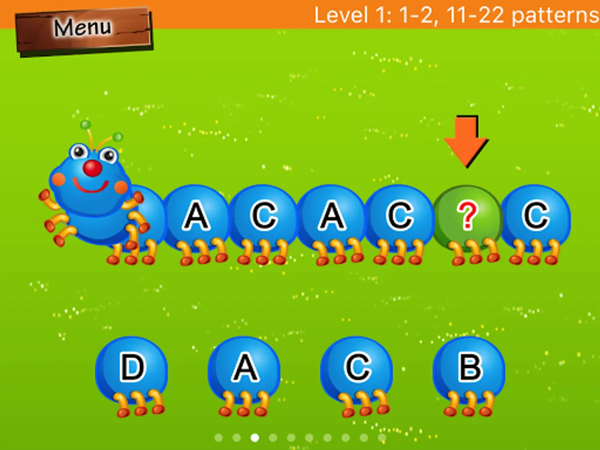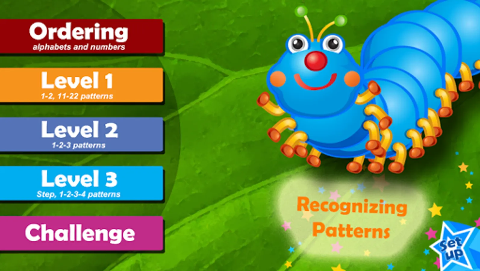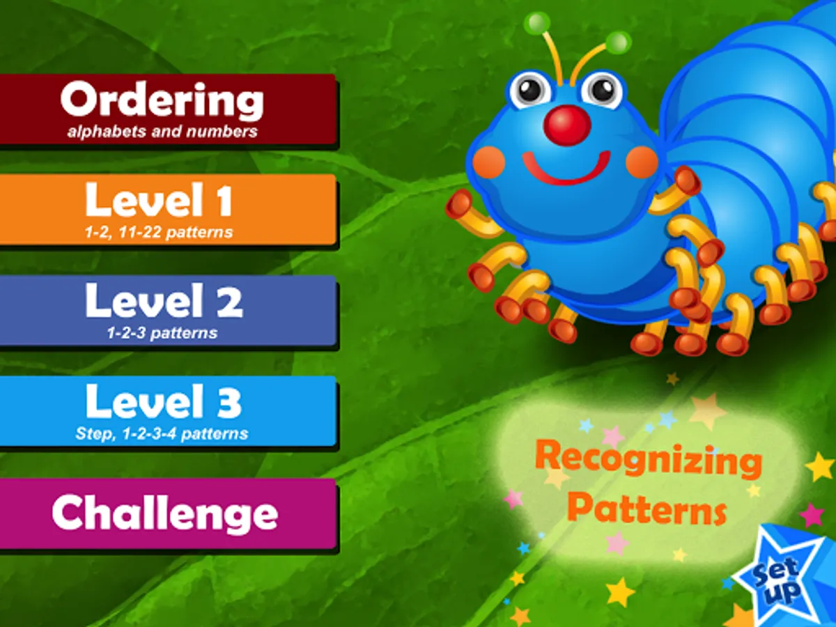 Moofy Recognizing Pattern is a great app for preschool, kindergarten to 1st grade children to practice ordering and patterning. They will learn alphabetizing and ordering numbers, easy number patterns (i.e, count on to 20, even numbers, and count back from 10), and basic pattern sequences with pictures, colors and shapes (i.e, 1-2 or 11-22 patterns). For advanced level, there are more challenging number patterns (i.e, count on to 100, count back from 20, count on to 100s by 10s, count on to 100s by 5s, odd number to 20, count by 3’s, 4’s, 6’s, 7’s, 8’s, 9’s) and advanced pattern sequences (i.e., 1-2-3 patterns, 1-2-3-4 and Step patterns), to help your child learn more about patterning. This game also provides hints and feedbacks to help kids think and understand how the patterns are.