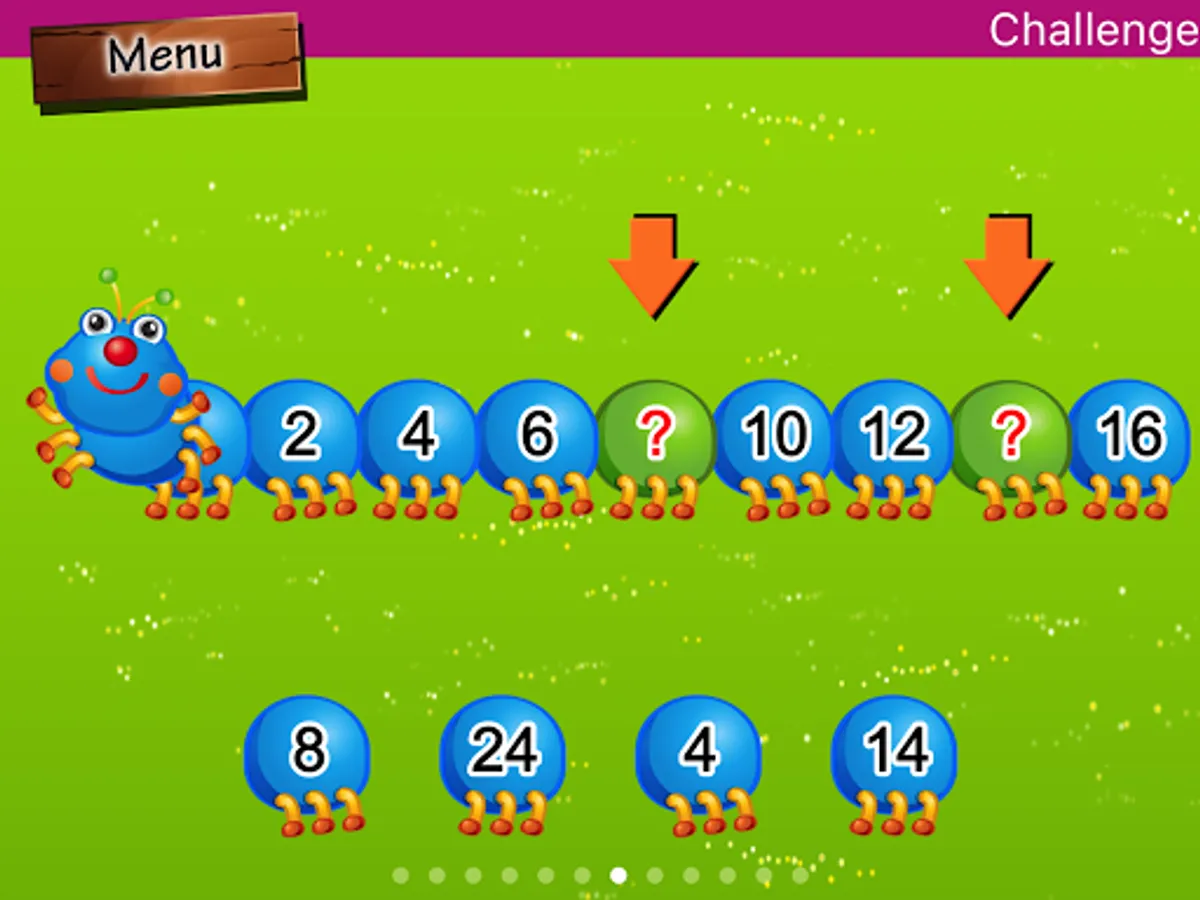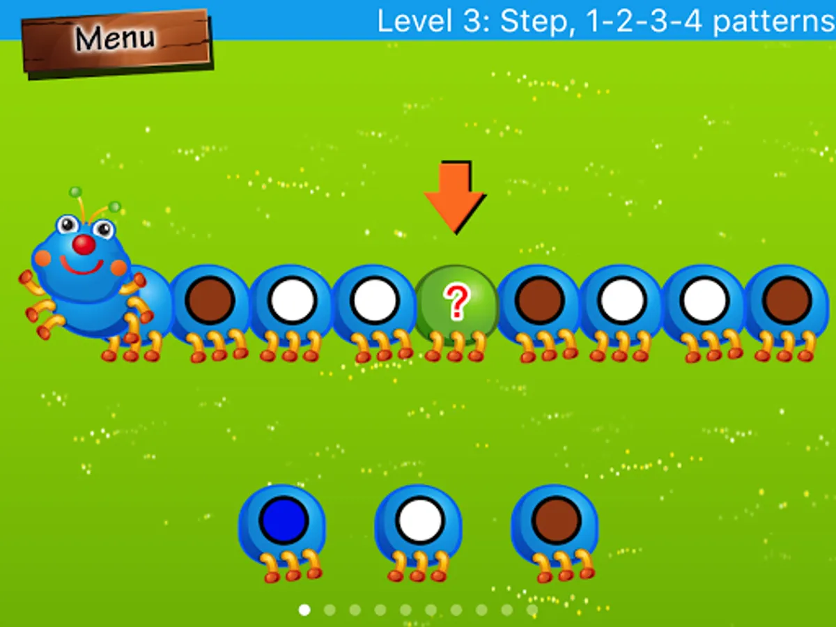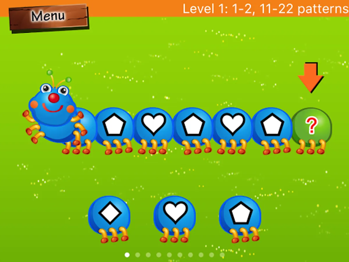 Moofy Recognizing Pattern is a great app for preschool, kindergarten to 1st grade children to practice ordering and patterning. They will learn alphabetizing and ordering numbers, easy number patterns (i.e, count on to 20, even numbers, and count back from 10), and basic pattern sequences with pictures, colors and shapes (i.e, 1-2 or 11-22 patterns). For advanced level, there are more challenging number patterns (i.e, count on to 100, count back from 20, count on to 100s by 10s, count on to 100s by 5s, odd number to 20, count by 3’s, 4’s, 6’s, 7’s, 8’s, 9’s) and advanced pattern sequences (i.e., 1-2-3 patterns, 1-2-3-4 and Step patterns), to help your child learn more about patterning. This game also provides hints and feedbacks to help kids think and understand how the patterns are.