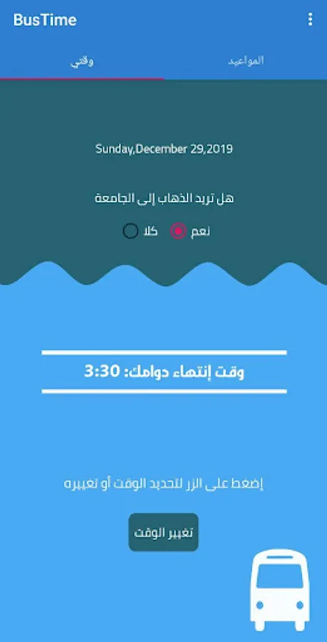and make bus network and also has the password of this network ,this app helps in making students send there time of end of there day at university and check when there is a trip,and with whom should they return and also see the time of there friends and add time for them