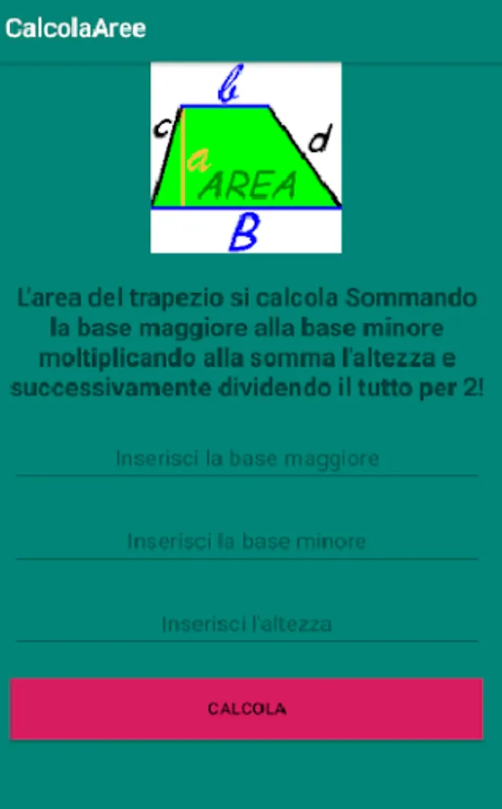 This application aimed at elementary and middle school students briefly explains and calculates the most frequently used areas