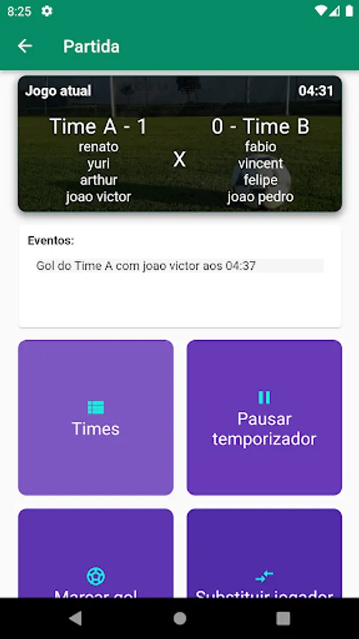 With FutRua, you don't have to worry about drawing teams or managing the score manually, as the application does it all for you. Furthermore, it is possible to define the number of players on each team, choose the time of the match and even add the names of the players who scored a goal to the scorer panel.