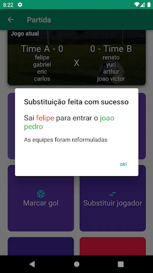 And if someone gets tired or injured during the match, don't worry! FutRua has an option to replace players and keep the match balanced until the end.