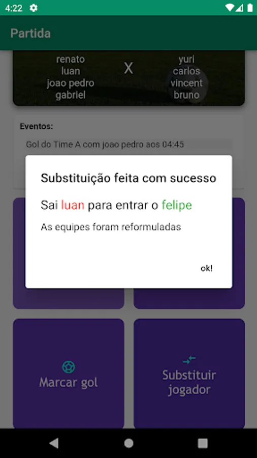 And if someone gets tired or injured during the match, don't worry! FutRua has an option to replace players and keep the match balanced until the end.