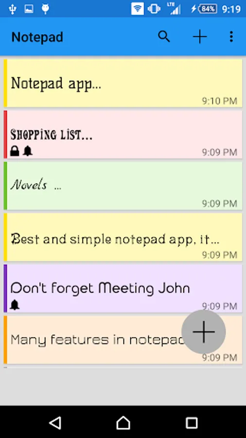 -Sorting notes :Note - Notepad allow you to Sorting notes , you can sorting your note by (alphabetical or created time).
