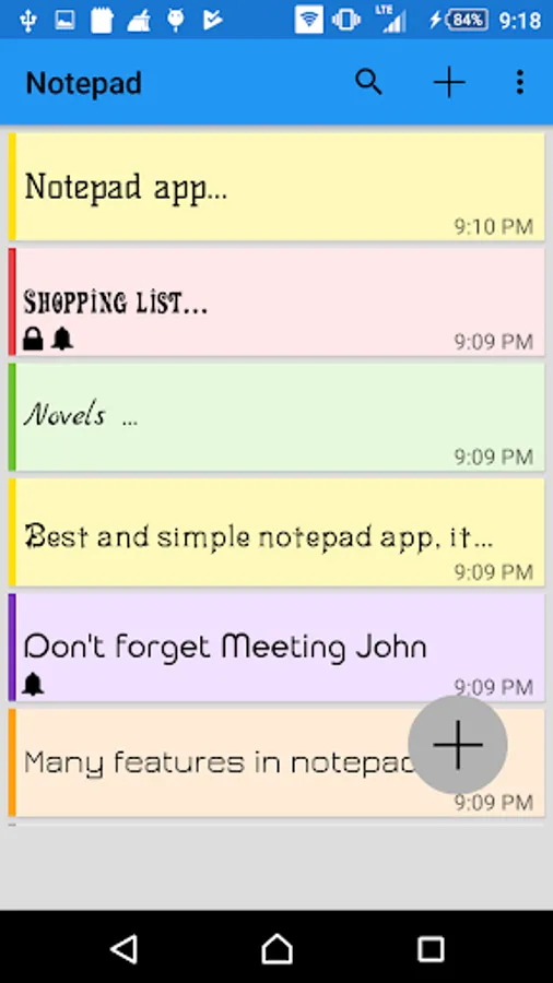 -Sorting notes :Note - Notepad allow you to Sorting notes , you can sorting your note by (alphabetical or created time).