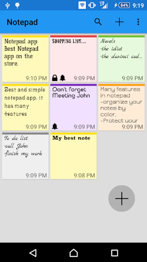 -color :Note - Notepad allow you to organize notes by colors , there are many colors. just choose the look you like .