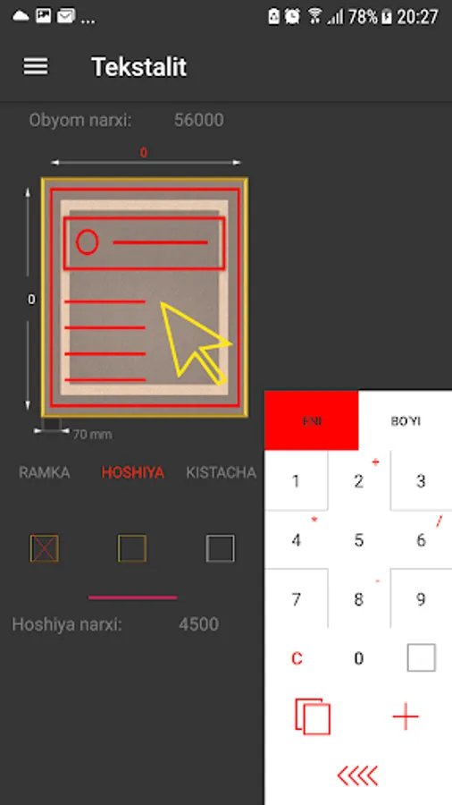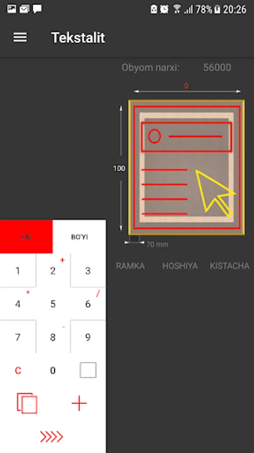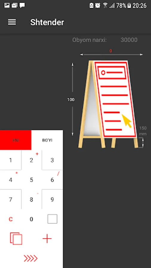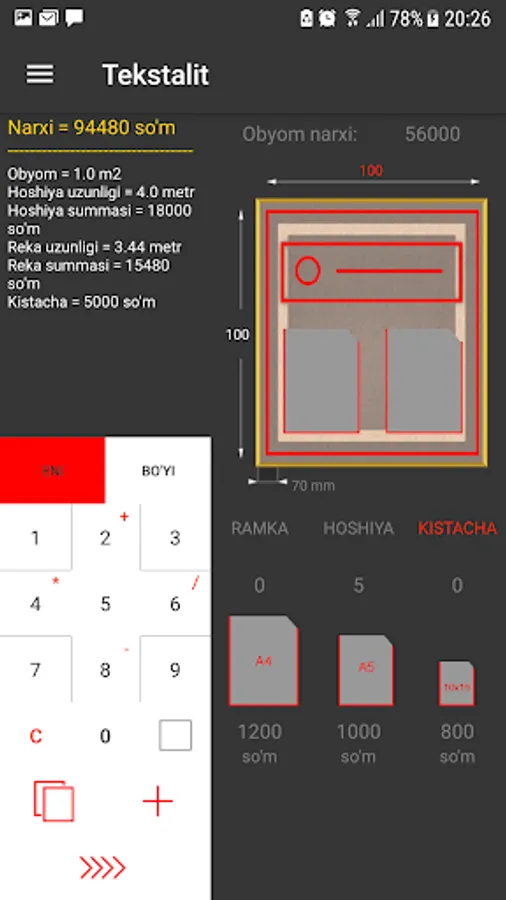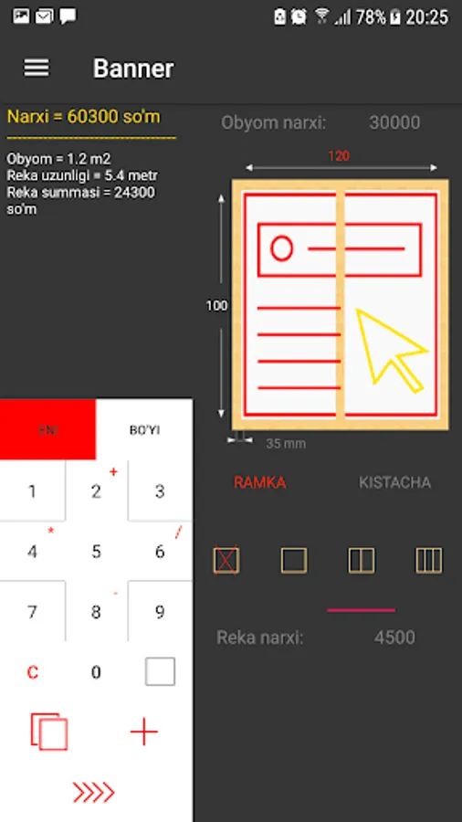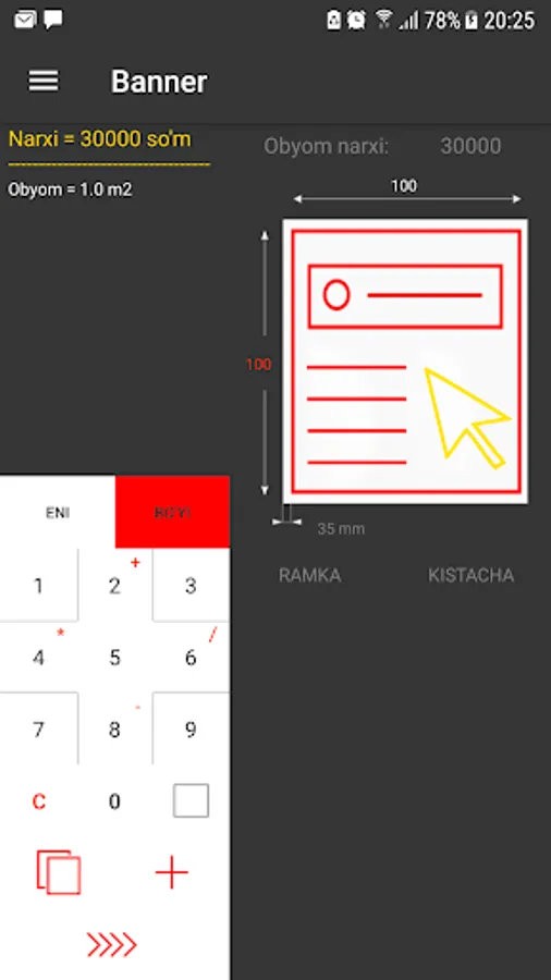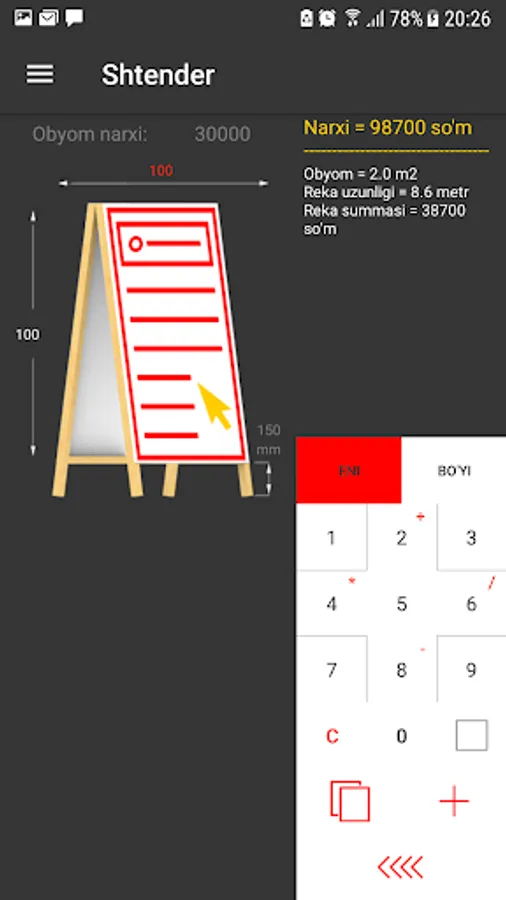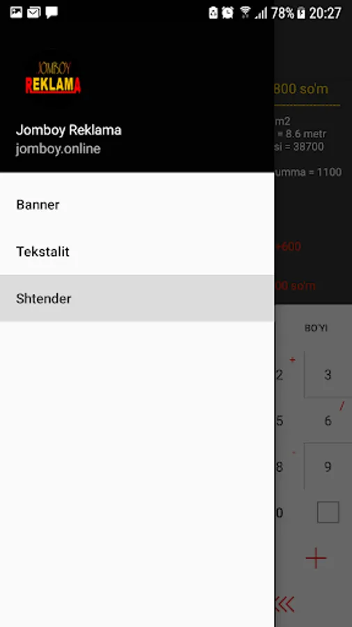 Jomboy Reklama Xizmatida narxlarni hisoblab chiqaruvchi kalkulyator