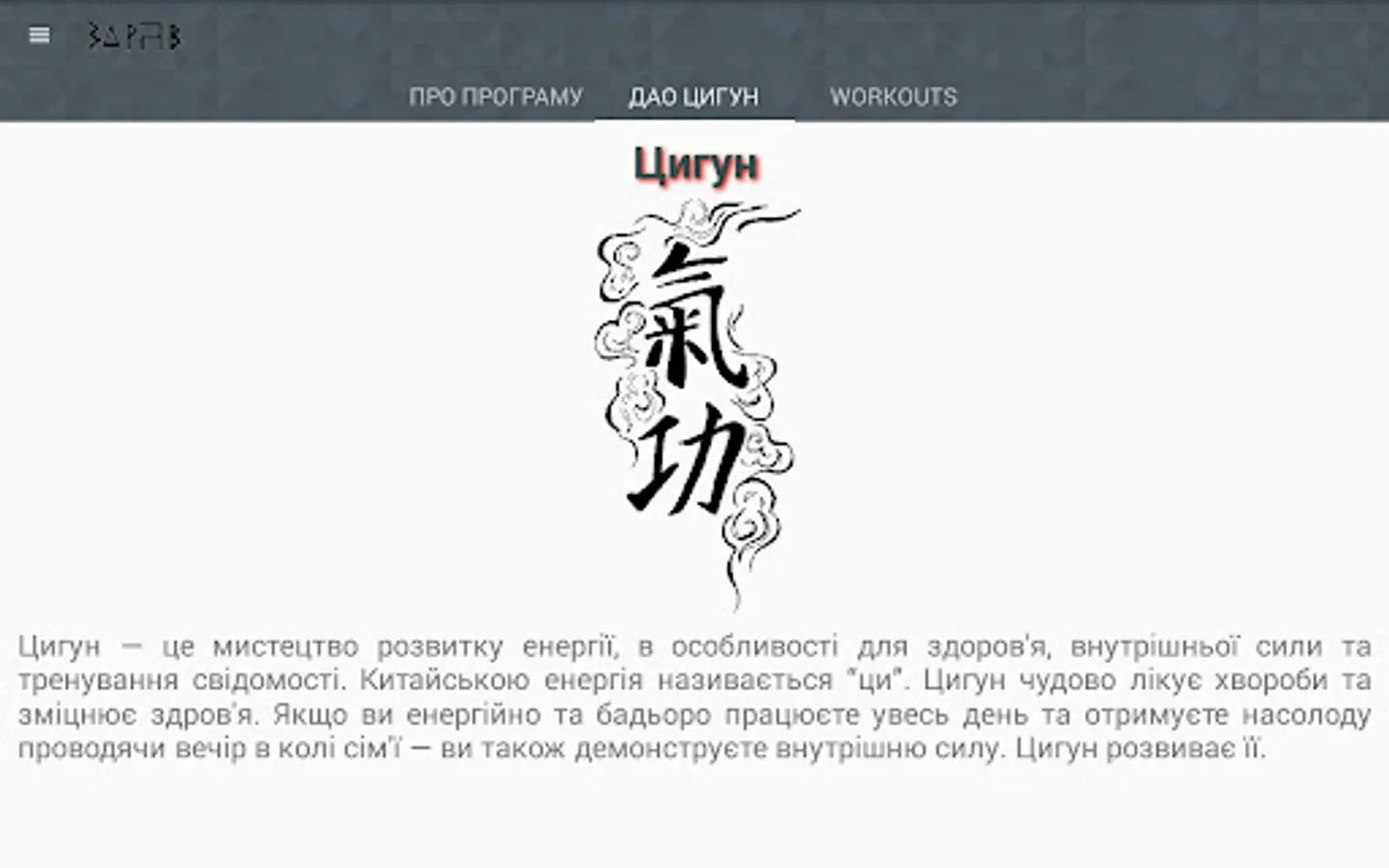 The Zdrav application was created to help people learn simple and effective ways to improve their physical and mental health. It consists of two main complexes: ancient Qigong techniques and effective, modern, "without projectile" exercises Workouts. Exercises are available to people of different levels of physical and psychological training. The application contains a detailed description of the exercises, a video guide and the ability to set it up with video-audio support that will allow you to learn from "scratch".