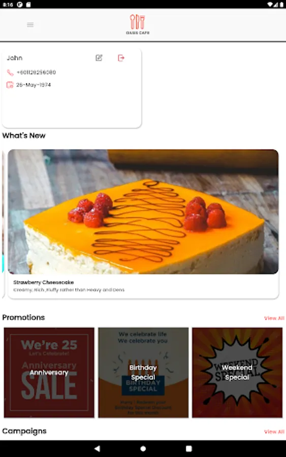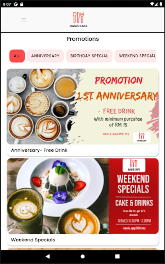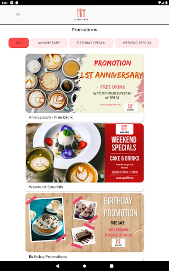 Oasis Cafe App is the best way to get your coffee and desserts. Order using the app to get instant cashback and special offers!