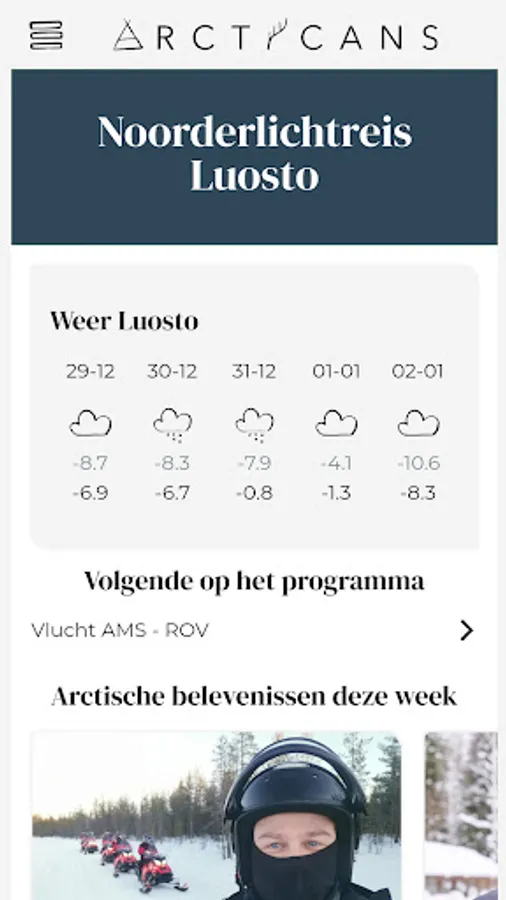 The Arcticans App provides insight into your trip that has been booked. Such as a weekly schedule, optional excursions, but also the possibility to share photos with fellow travelers.