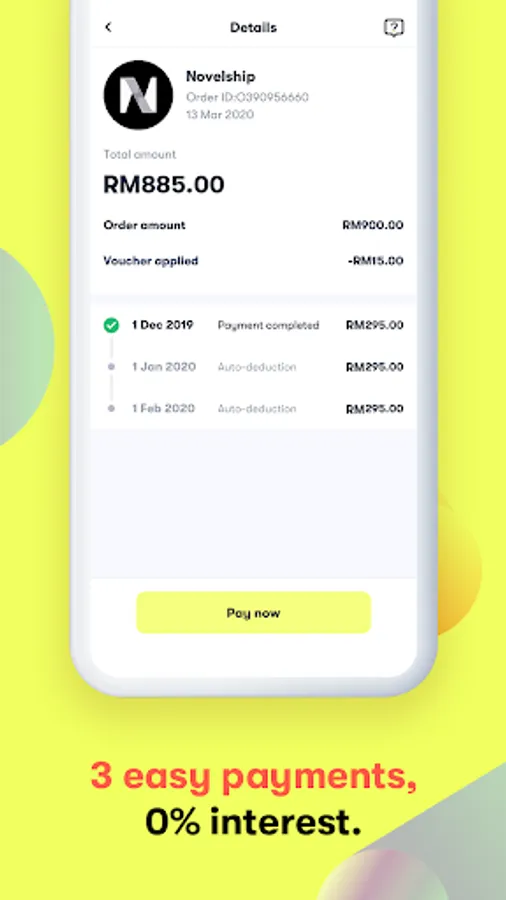 Atome allows you to pay flexibly. Choose from 3 interest-free payments, or opt for more time with a small processing fee. All fees are clearly displayed in the app when you transact. You'll pay the first payment at the point of purchase, and subsequent payments monthly.