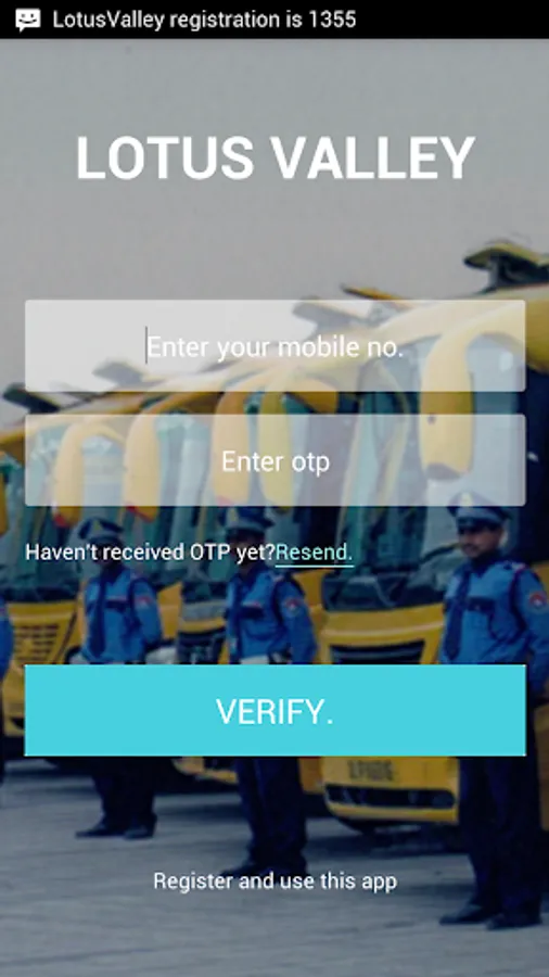 ‘Welcome to Lotus Valley International School, NOIDA Bus Tracking System. BTS has been incorporated as an extended facility for the convenience of parents to know and track the location of the student travelling in the bus. Any suggestions and feedback are welcome at email: anoop@g-trac.in , g.gauravkumar88@gamil.com.'.