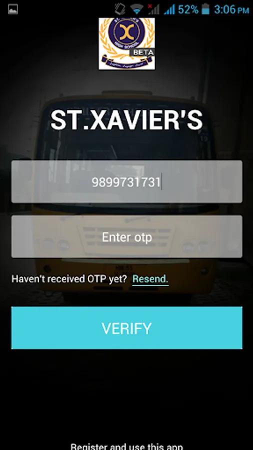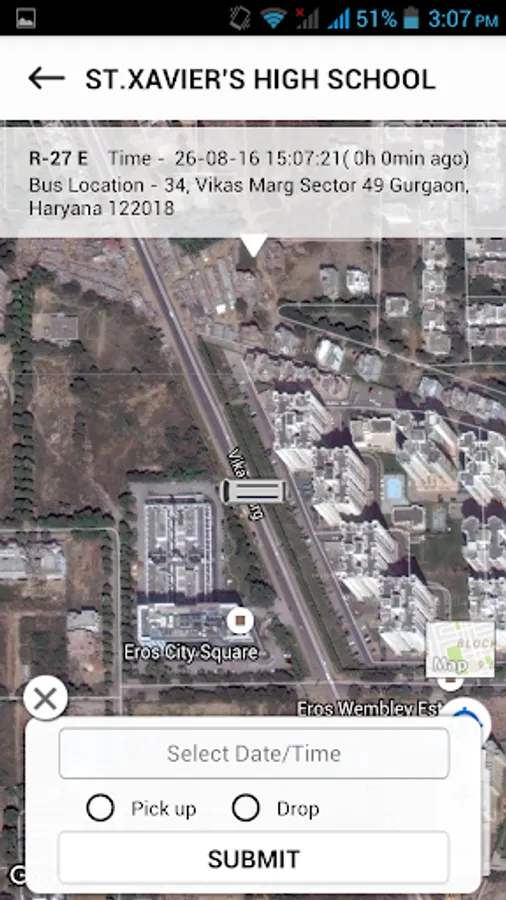 ‘Welcome to St Xavier High School ,Gurgaon Bus Tracking System. BTS has been incorporated as an extended facility for the convenience of parents to know and track the location of the student travelling in the bus. Any suggestions and feedback are welcome at email: anoop@g-trac.in , g.gauravkumar88@gmail.com.'.