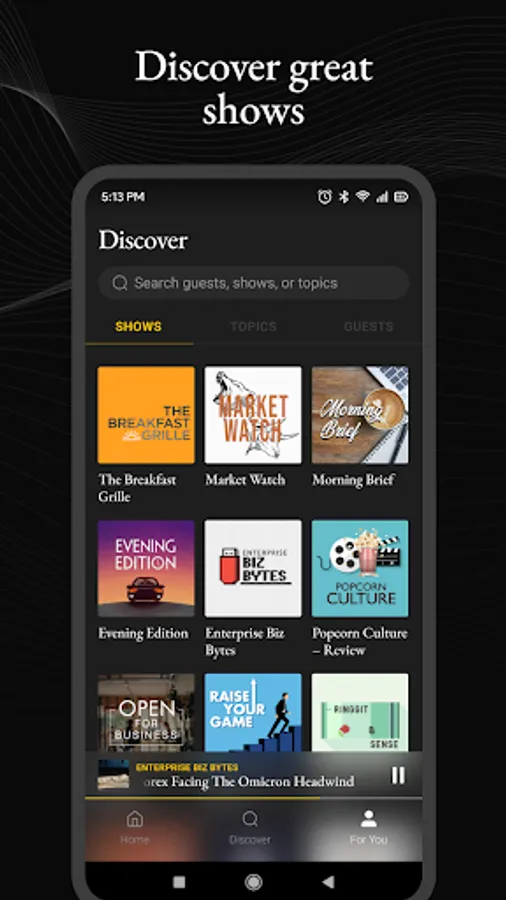 * Discover fresh, hand curated daily content from BFM – including podcasts, stories, shorts, and videos (coming soon!).