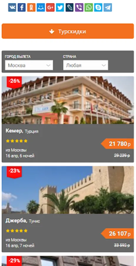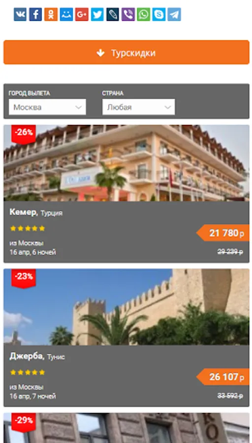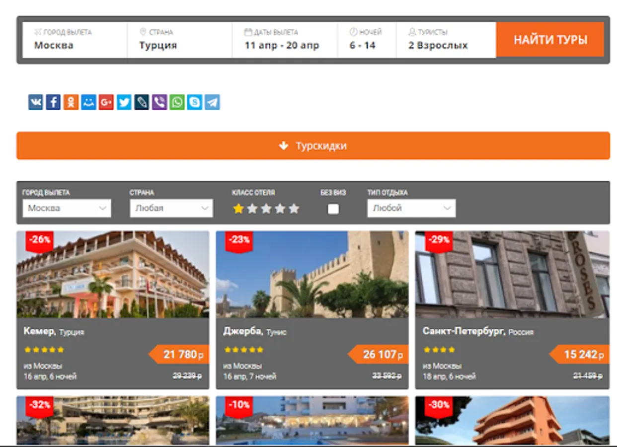 4) Convenient search of tours by countries and resorts.