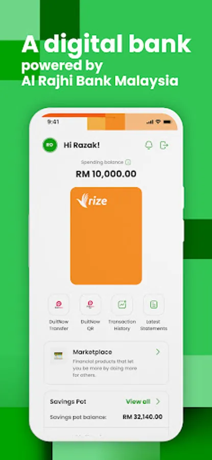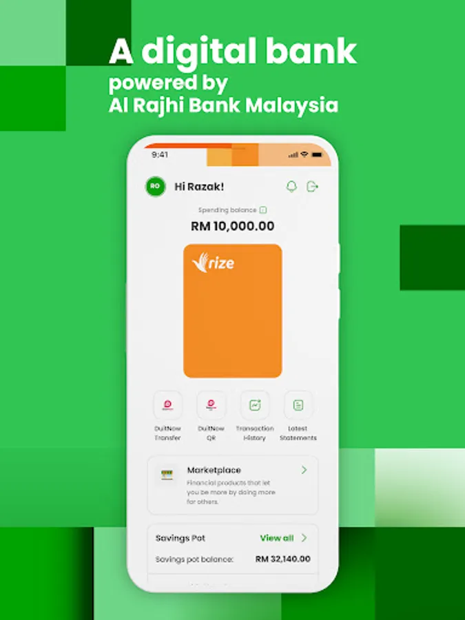 Discover your more with Rize, an innovative digital bank powered by Al Rajhi Banking & Investment Corporation (Malaysia) Bhd* that is set to revolutionize 21st century banking in Malaysia. Open an account within minutes, skip the long queues and paperwork, enjoy 24/7 banking, create savings goals, make a donation easily, perform instant transfers, and so much more.