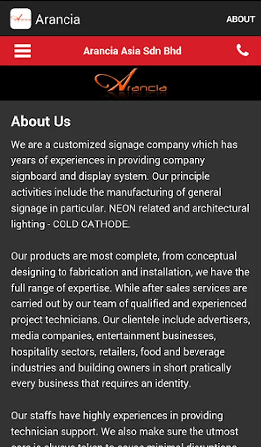 We are a customized signage company which has years of experiences in providing company signboard and display system. Our principle activities include the manufacturing of general signage in particular. NEON related and architectural lighting - COLD CATHODE. Our company is located at Puchong, Selangor, Malaysia.