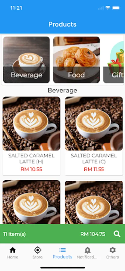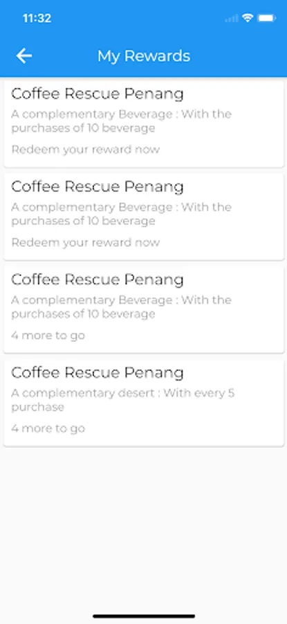 Track purchases to redeem rewards for beverage or food.