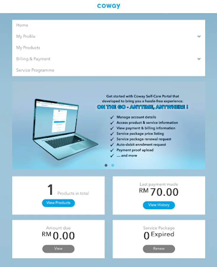 Get started with Coway SelfCare that is developed to bring you a hassle-free experience. Manage your Coway account seamlessly anytime, anywhere.