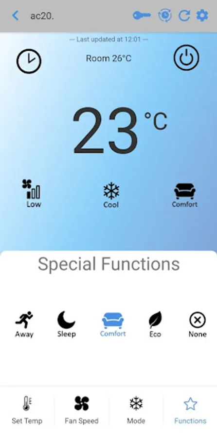 • Set Special Functions: Away, Sleep, Comfort, Eco