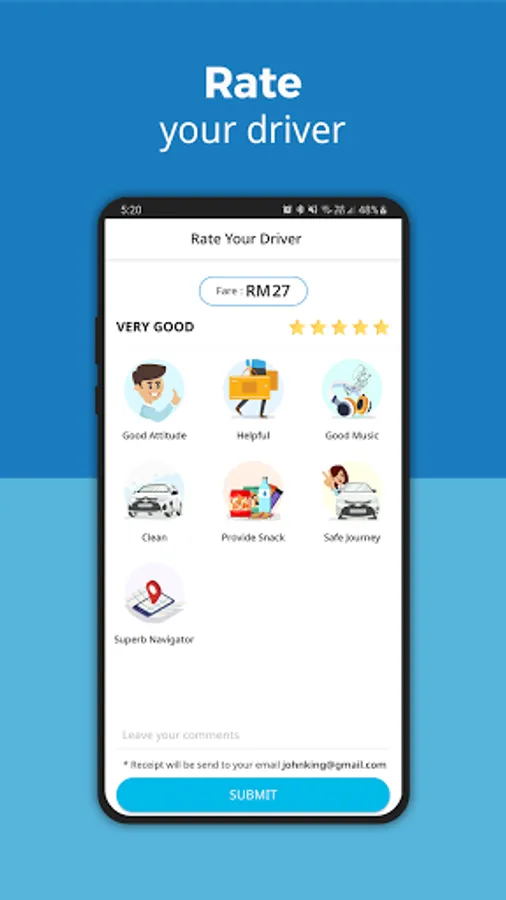 5) easy(EzCab) Support Call Centre will notify you with your ride status such as estimate arrival time.