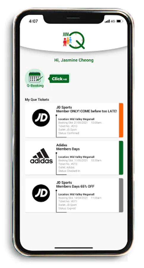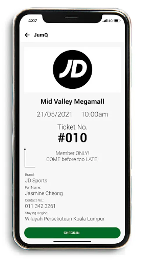 JumQ Mobile App allows you to get a mall outlets queue number using your smartphone.