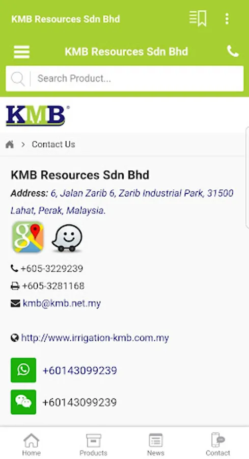KMB Resources Sdn Bhd is located in Lahat, Perak, Malaysia. We are one stop solution service provider in all kind of agricultural and irrigation product such as housing connection, irrigation, sanitary ware and water distribution. We also provide the drip irrigation service.