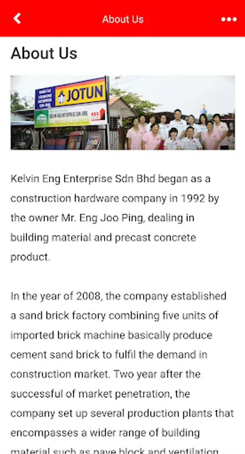 Kelvin Eng Enterprise Sdn Bhd began as a construction hardware company in 1992 by the owner Mr. Eng Joo Ping, dealing in building material and precast concrete product.