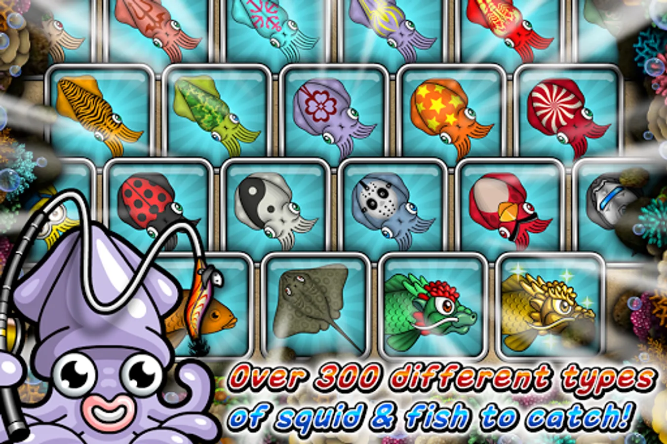 Experience the true joy of catching live squids and legendary sea creatures.