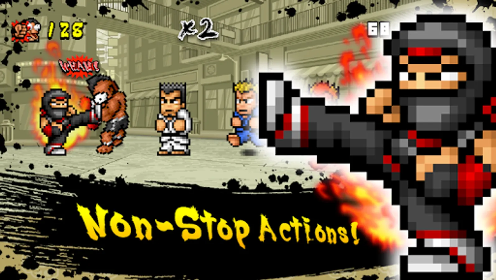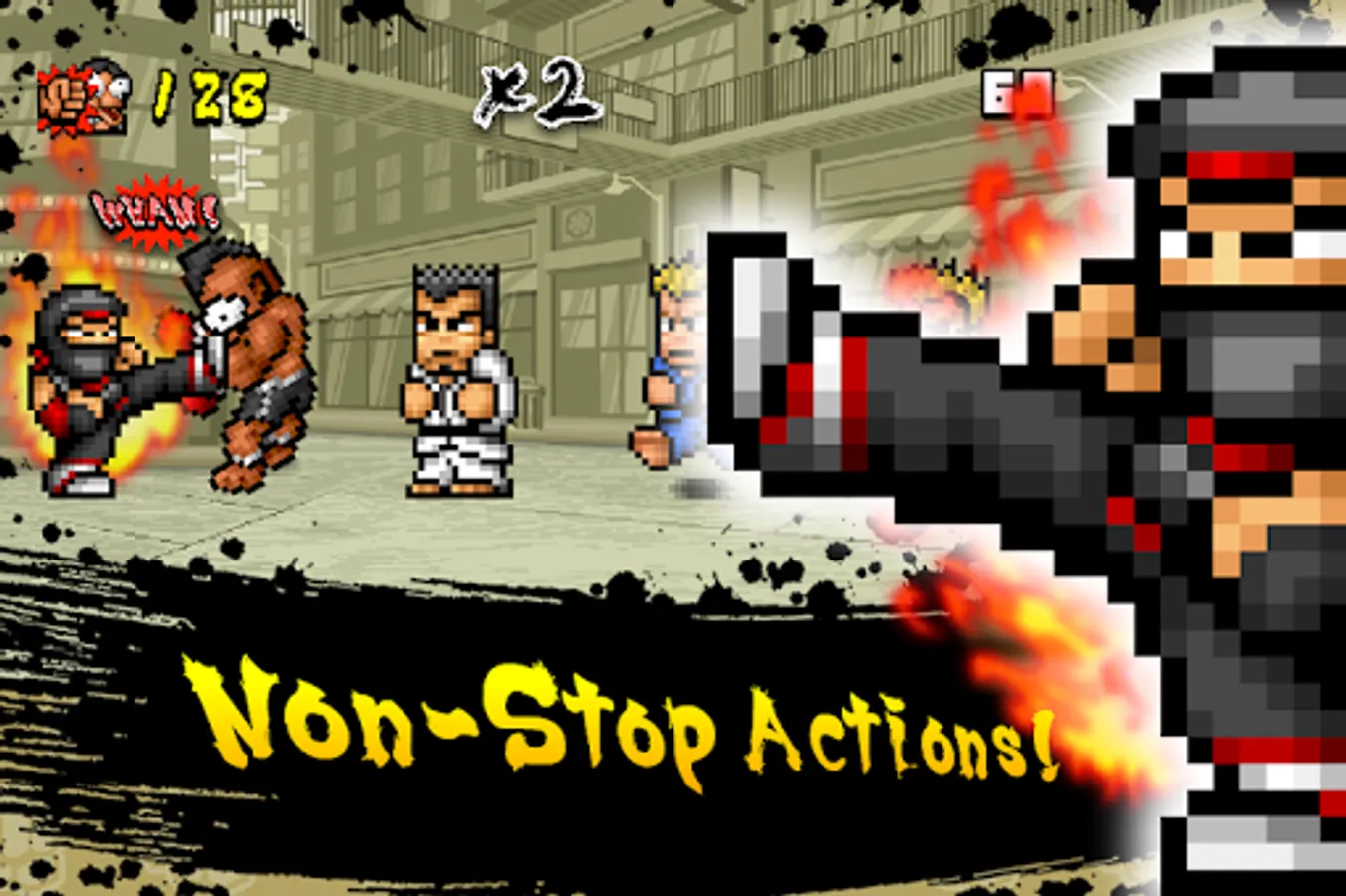 A fast paced endless finger tapping beat 'em up game with up to 40 different characters available for unlock.
