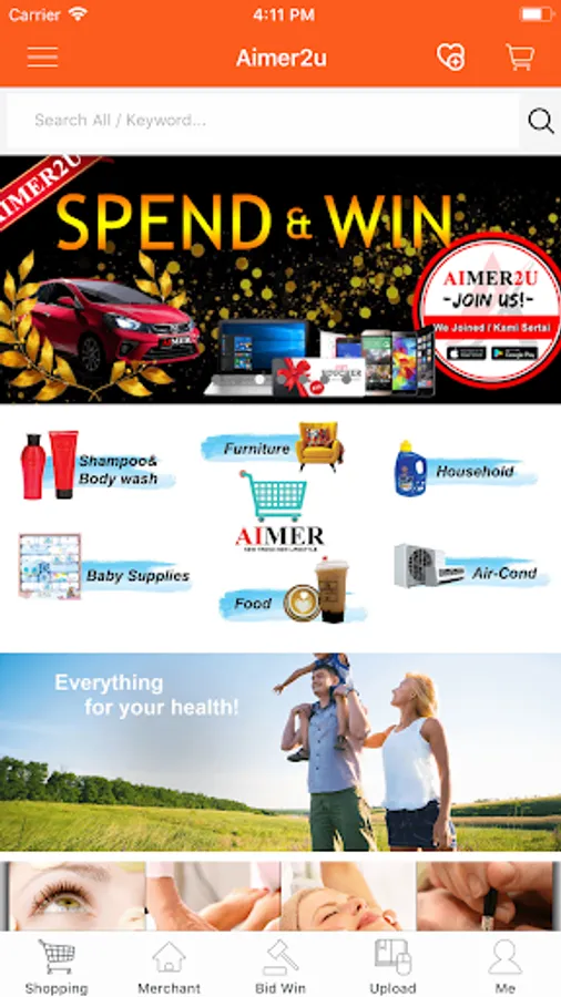 Aimer2u is an Online Shopping Mall, an ecommerce selling platform. Join us as user for free and you can enjoy many rewards from us such as Cash Back, Points, Coupon and Vouchers.