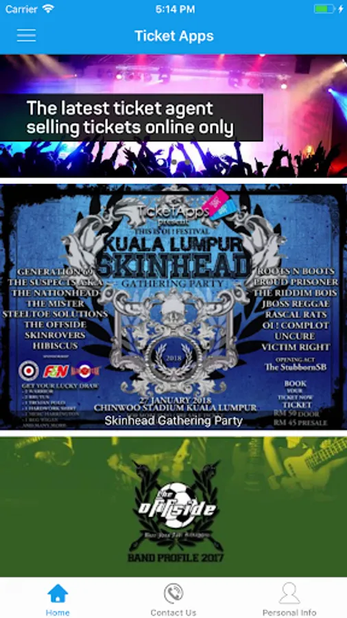 TicketApps - your convenient ticket agent in your pocket. No more worry of misplaced ticket, you may check or view your ticket any time any place, it’s paper free. Carry your hand phone and you may enter to the event with a scan your QR code. You can find and purchase ticket for concert, seminar, exhibition sport etc... any time any where.