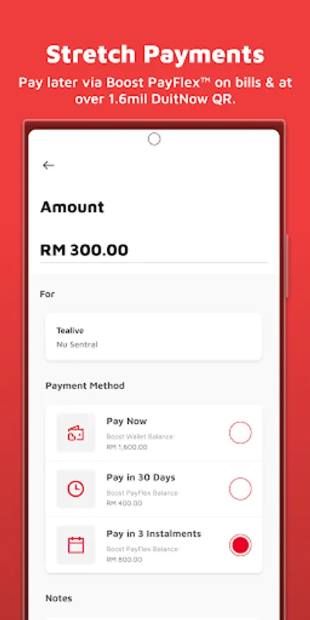 Shopping? Travel expenses? Bill payments? Enjoy whatever you want now and pay later with Boost! Activate Boost PayFlex in 3 simple steps and enjoy flexible payment terms on bills and at over 1.6 million DuitNow QR merchants. Pay in 30 days or in instalments, based on your preference.