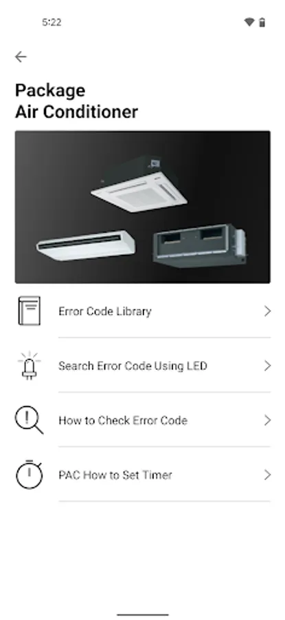 Once downloaded Panasonic AC Service Guide App allows you to: