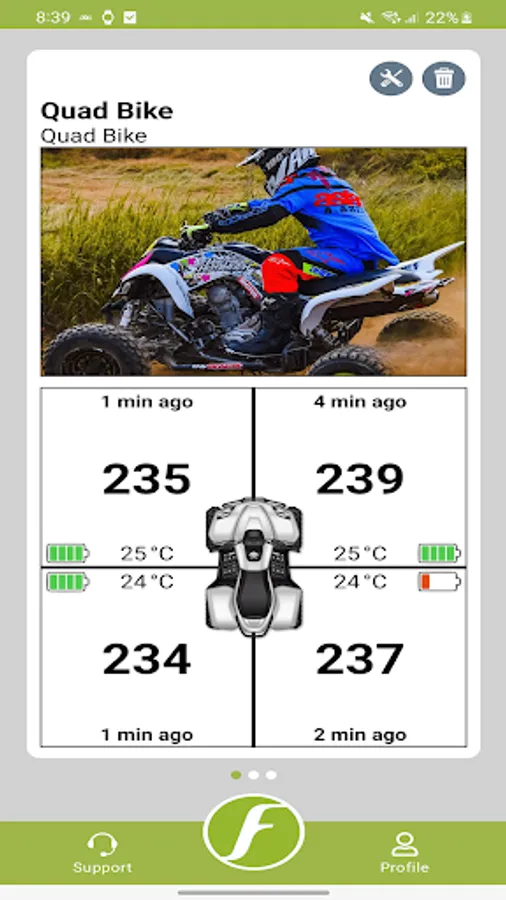 * Monitor tire pressure in real time while riding or stationary within Bluetooth range