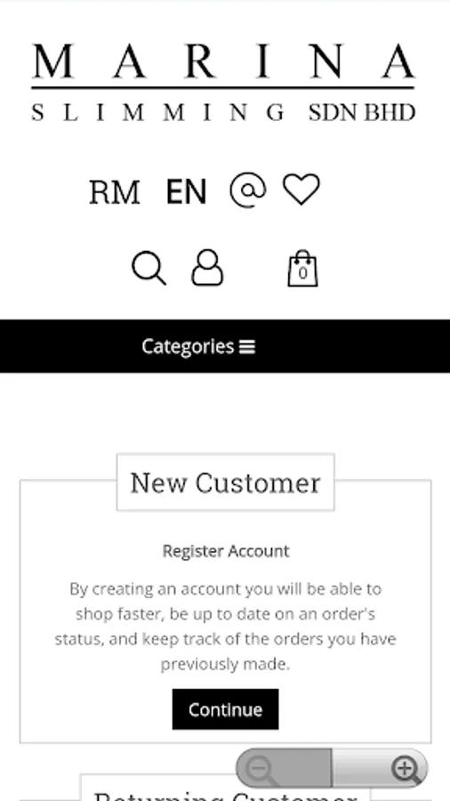MarinaSG.com Marina Slimming Sdn Bhd E-Commerce Webview Apps for Staff and Customer.