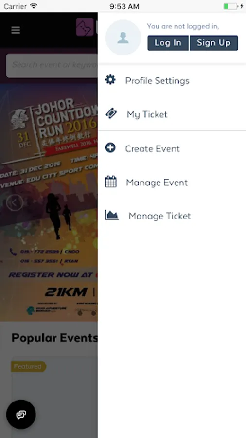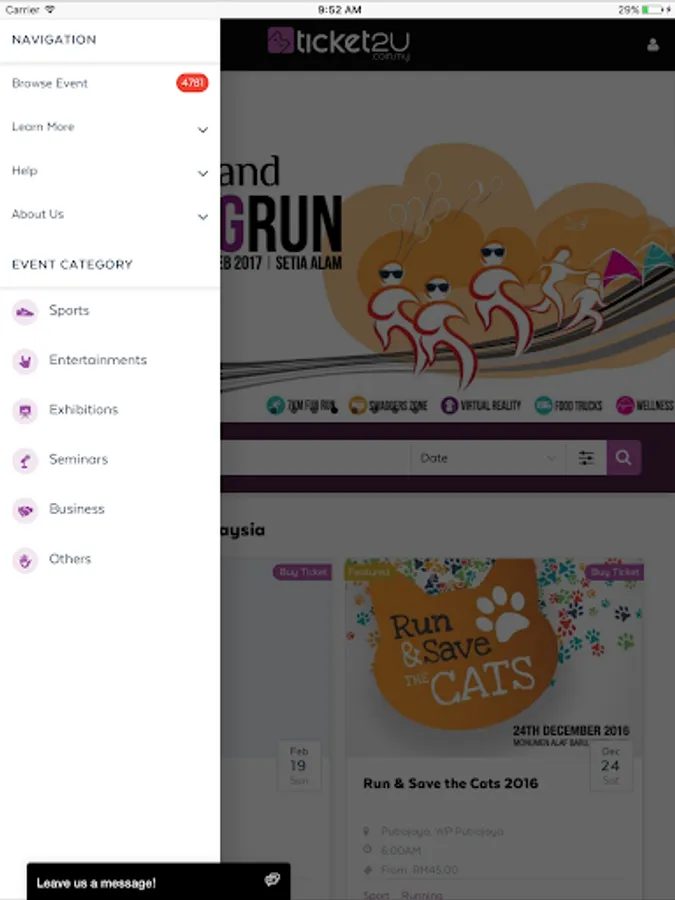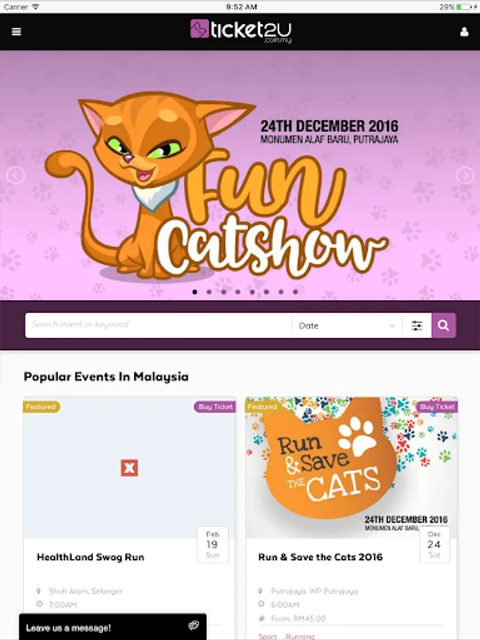 You can find and buy tickets for run, marathon, F1, MotoGP, seminar, conference, concerts, bus tickets, air tickets, themepark tickets and many kind of tickets available in this app.